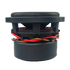 For those who care about the show as well as the go, there is red stitching to increase cone-to-surround connection strength. The cast aluminum basket has a great textured finish, and the front and center dust cap is a fiberglass woven showpiece that can take a hammering.
