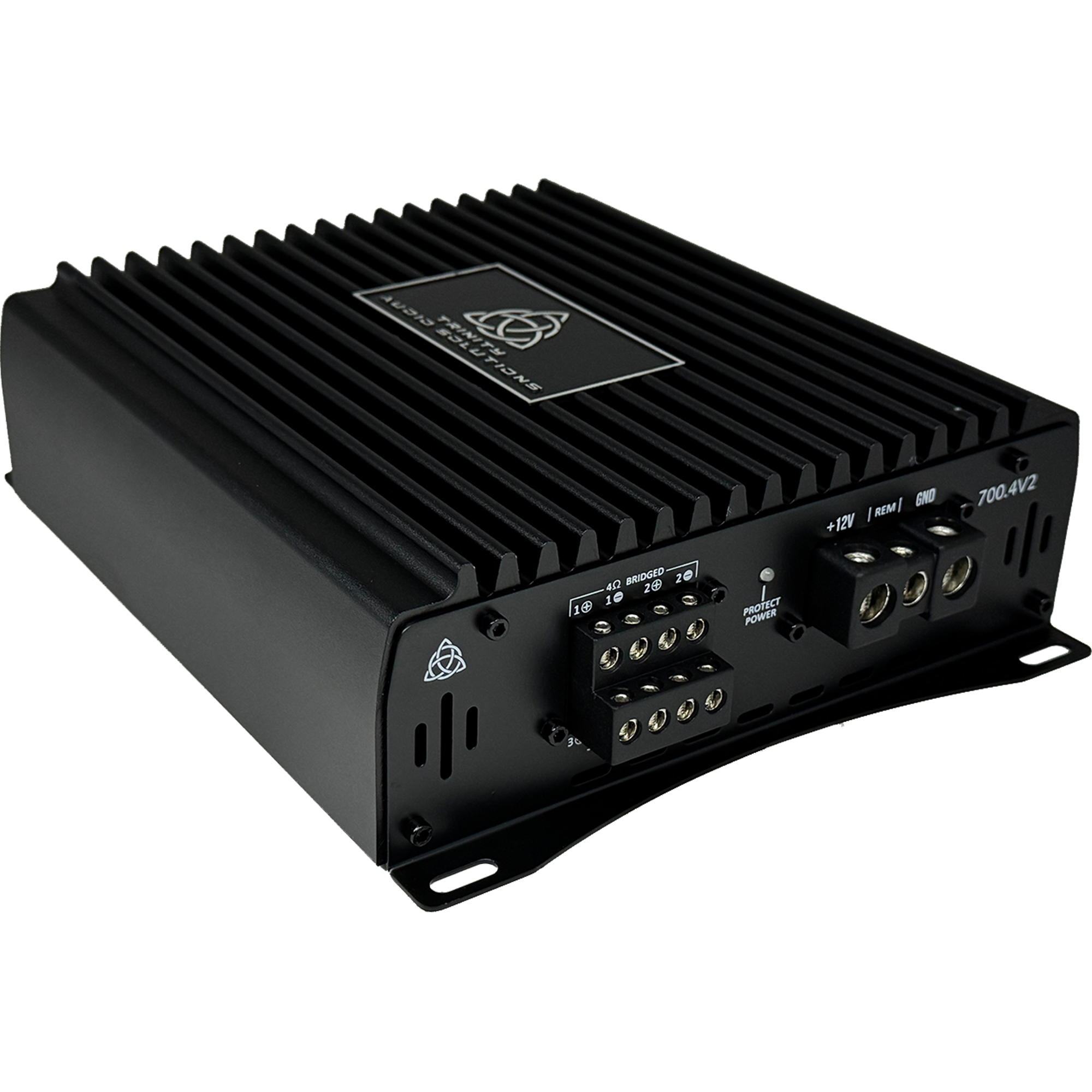 Engineered from the ground up, the Trinity Audio Solutions 700.4v2 4-Channel Amplifier undergoes rigorous testing to ensure exceptional quality, reliability, and performance. Trinity's dedication to quality, affordability, and a compact footprint drives the design philosophy behind the Trinity Audio Solutions 700.4v2 4-Channel Amplifier.