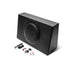 The Punch 300-12T is a self-contained subwoofer enclosure with built-in amplifier. This "all in one" solution is great for systems that need extra Punch on the low-end of the frequency spectrum. The 12" high output subwoofer is impedance optimized for the built in 300-watt class-D amplifier that features a low-pass crossover, bass EQ and phase switch. The enclosure can be connected via speaker level inputs for connection to factory systems, or traditional line level inputs for aftermarket systems. It also features an intelligent auto turn-of/off circuit that eliminates the need for a separate turn-on wire. The enclosure itself is precision designed and constructed using MDF (Medium Density Fiberboard) for the best acoustical properties and covered with heat activated vinyl finish to resist marks.